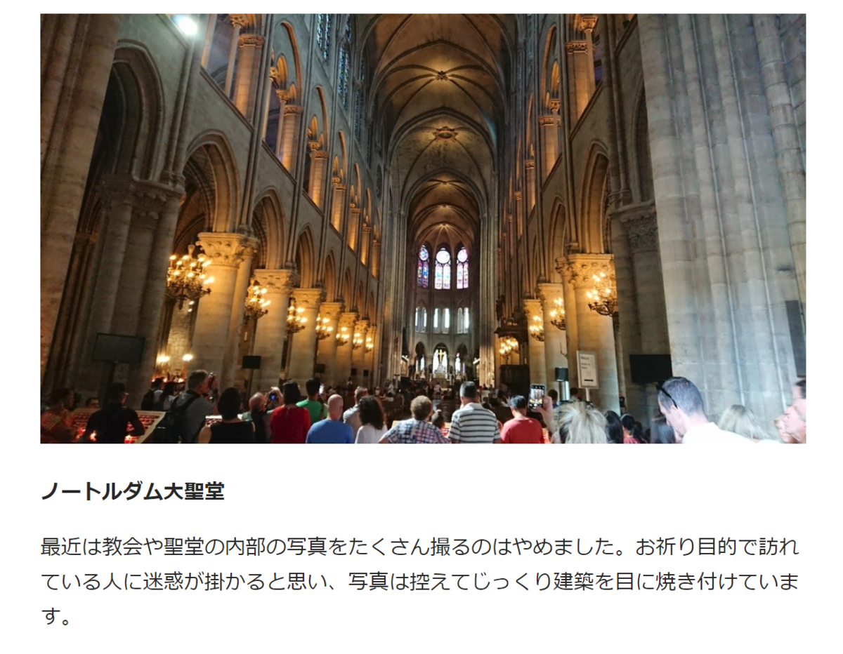 ↑昨年の旅で感じたことですが、このノートルダム大聖堂に訪れてからは神聖な場所で写真を撮りまくることを控えるようにしました。