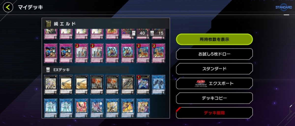 S14から調整しつつこの3種のエルドを使い分けました。ボーダーエルド以外の2種がS14/15でそれぞれダイヤ到達時に使っていたデッキです。