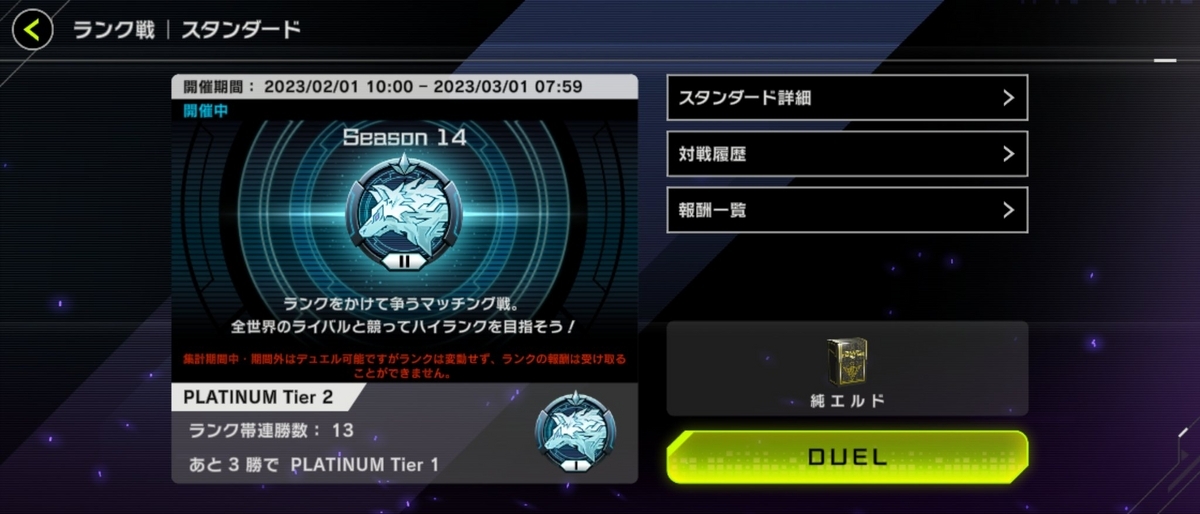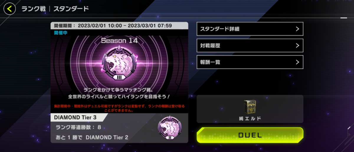 2023年2月のS14と今月のS15にてダイヤランク到達しました。