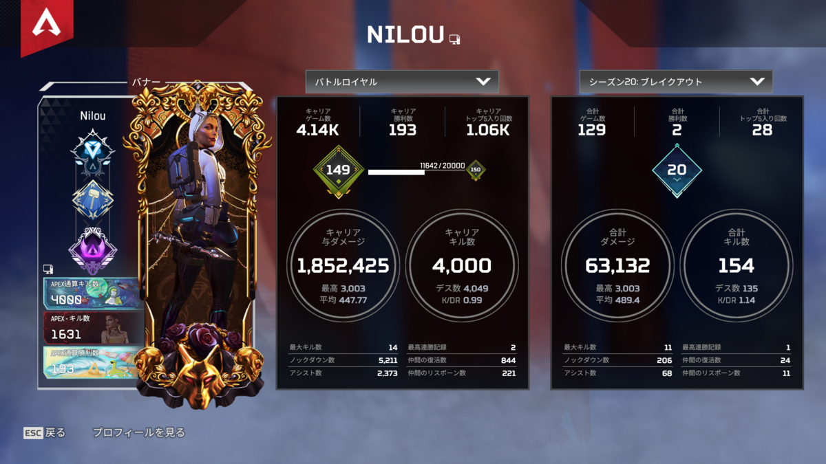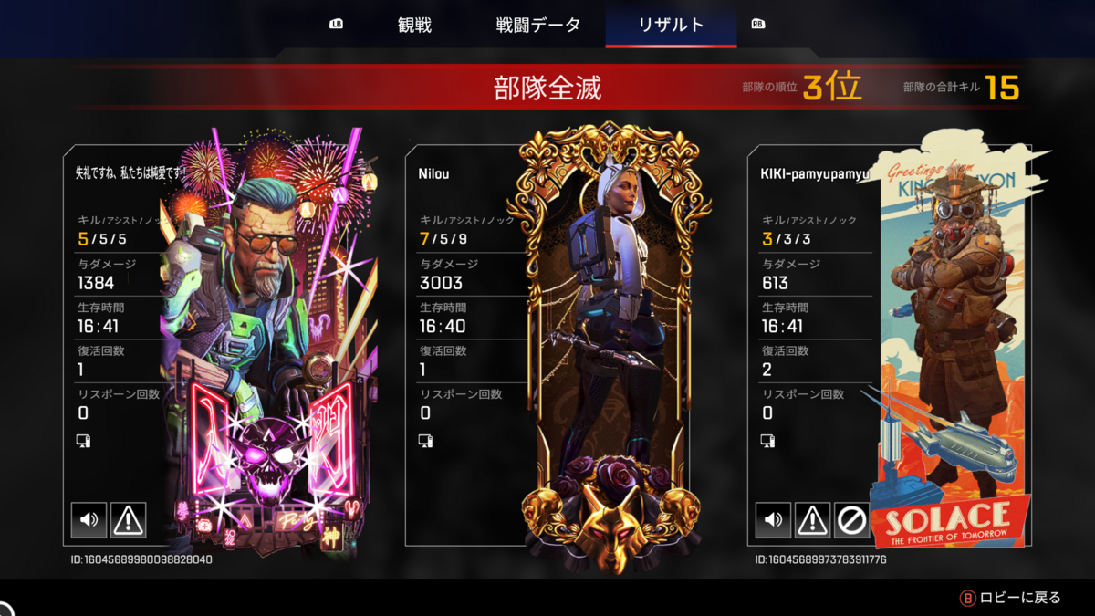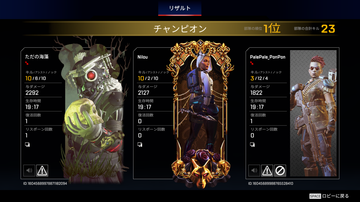 またこの際にAPEXを始めるきっかけをくれて毎日一緒に遊んでいた彼女とも別れました。以降はほぼソロ勢です。