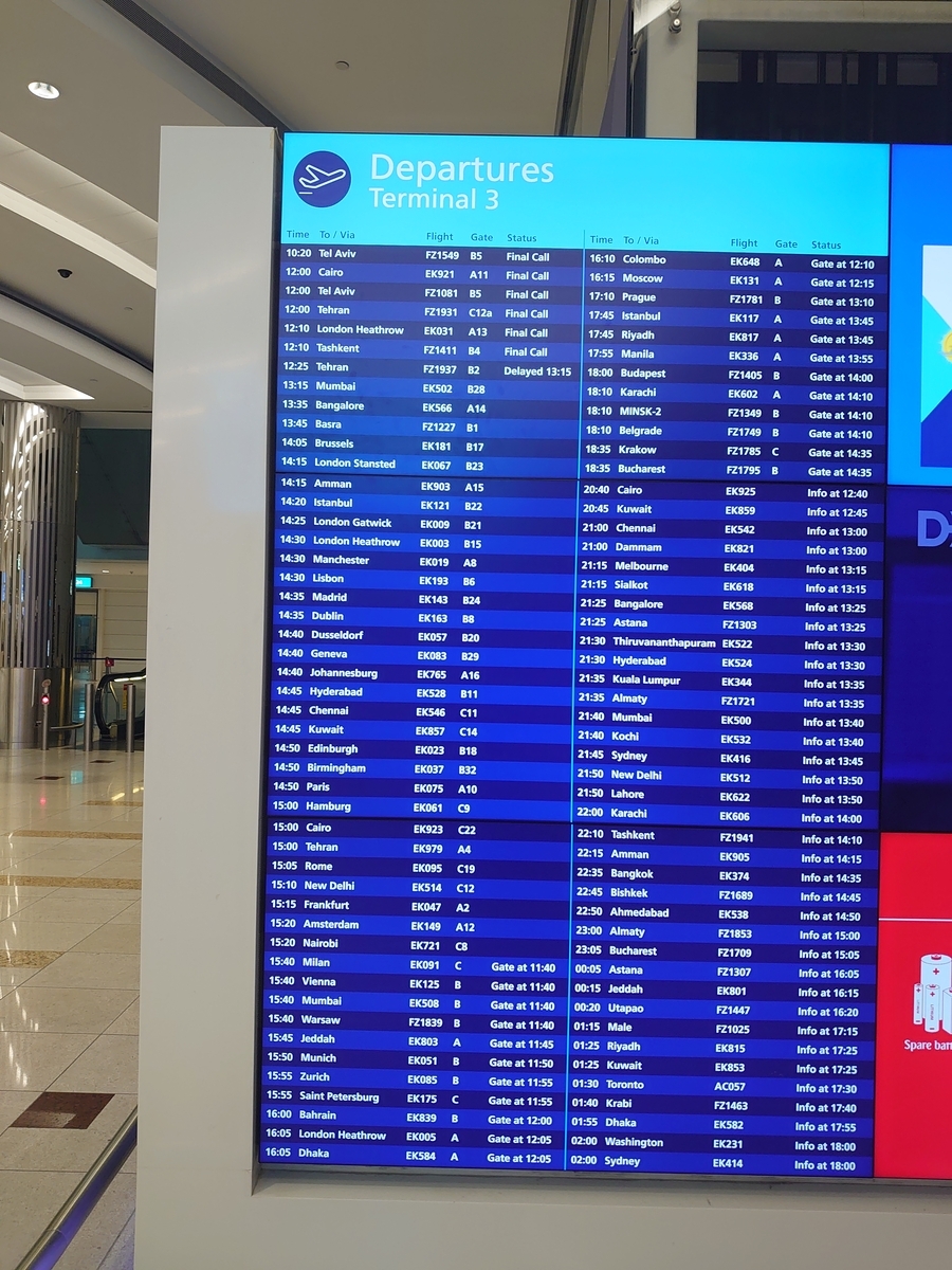 エミレーツ航空のハブ空港だけあって発着数がすごいです。