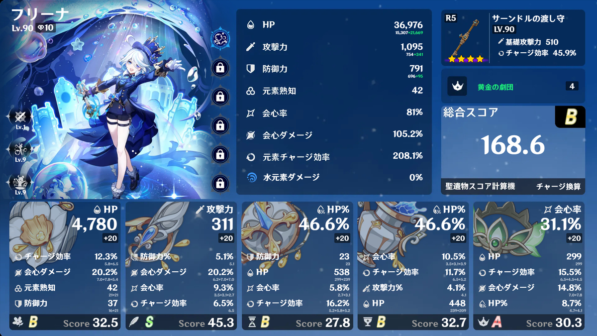 今回初めてヌヴィレットとフリーナが併用できなかったので、バフ要員の万葉シロネンは良いとして誰をラス1にするか悩みました。