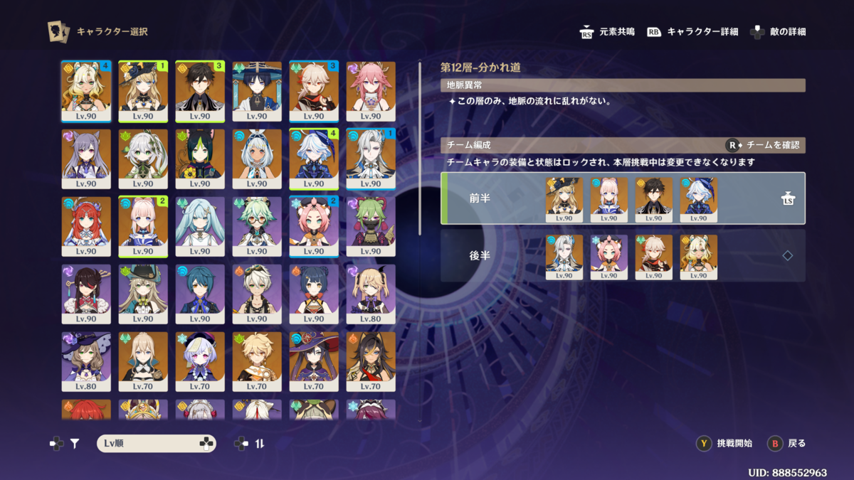 12-1はゆっくり攻略して元素爆発を次へ温存し、12-2後半を何度もやり直したのちにクリアできました!