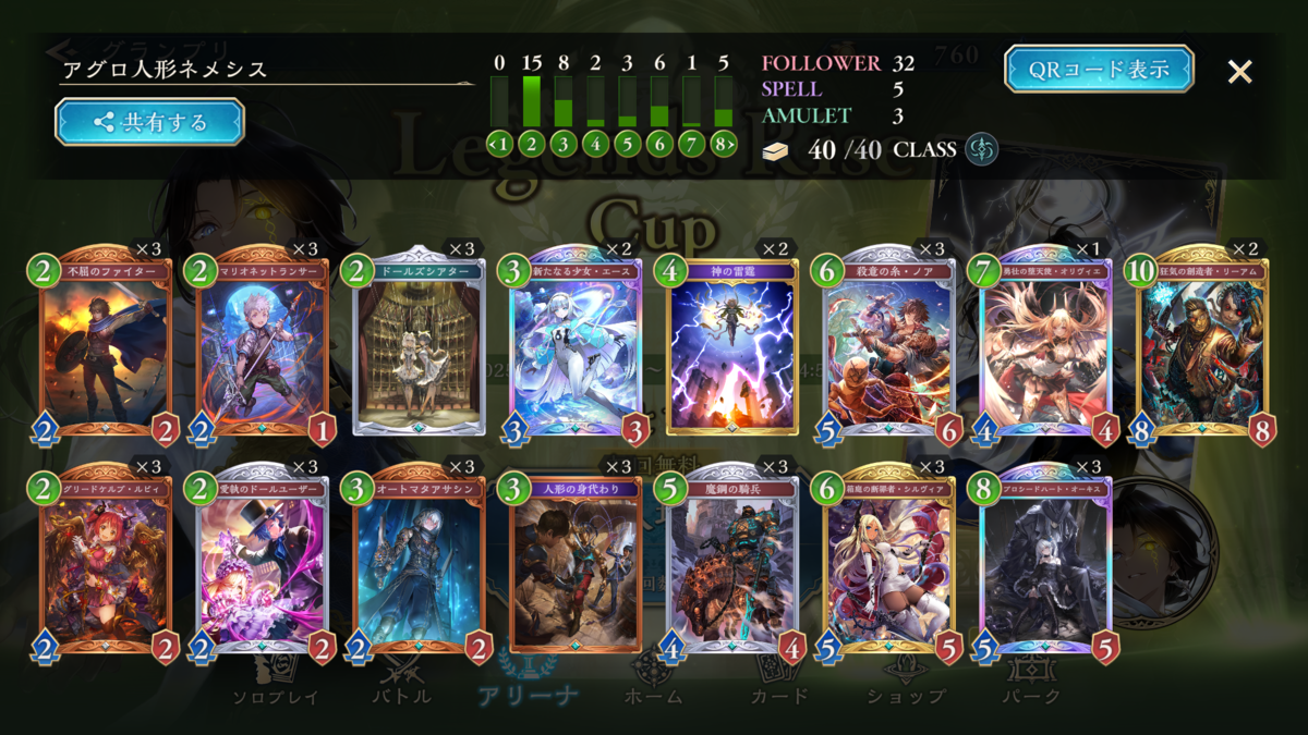 当初2コスカード少なめで福音など入れてエースもオリヴィエも無しで中々勝てなかったものの、2コスを増やしてアグロができるようになってから劇的に勝てるようになりました!