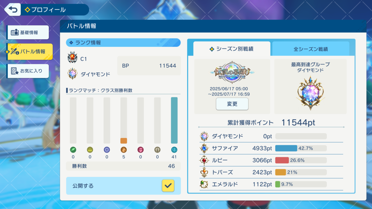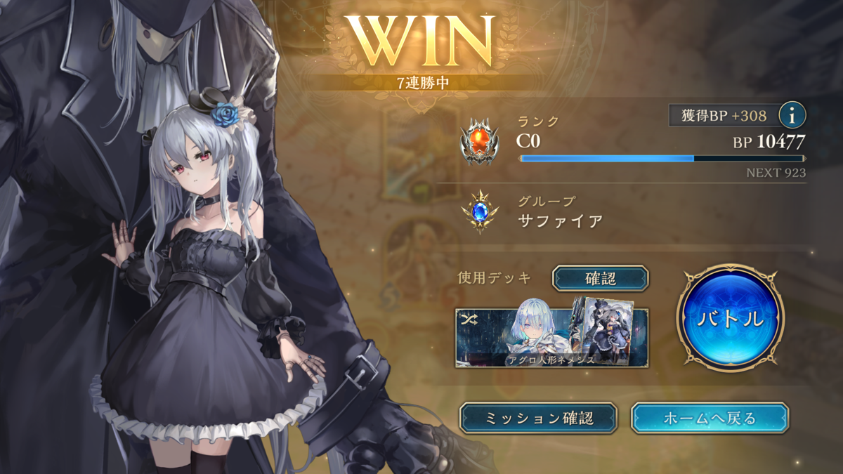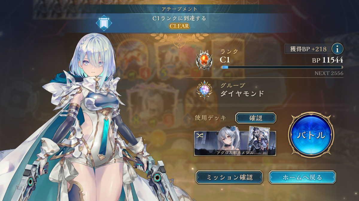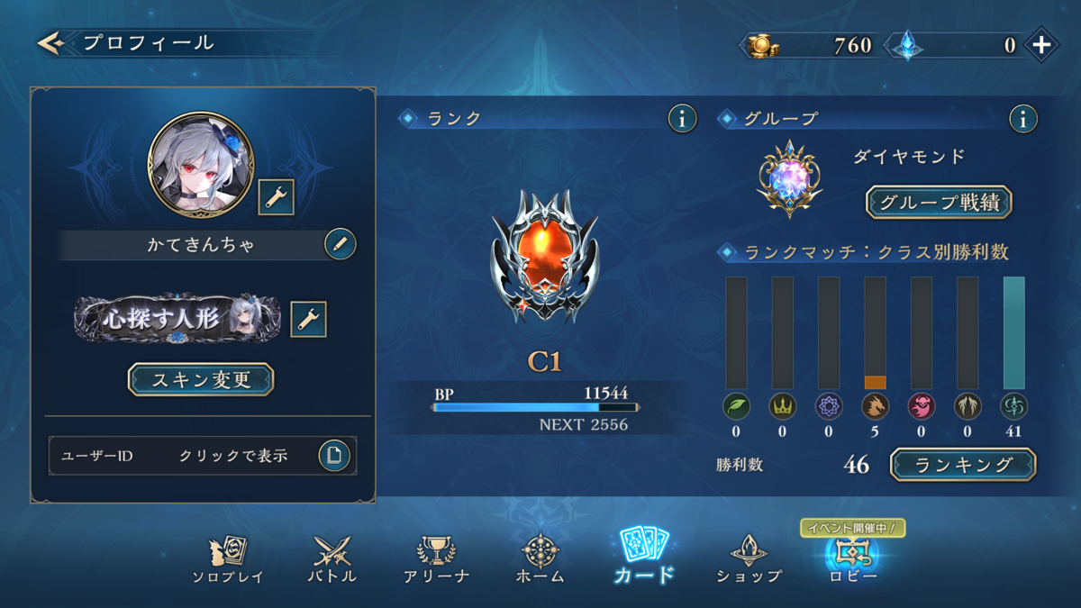 7月8日にシャドバビヨンド始めて、7月13日にグループ:ダイヤモンド到達しました!