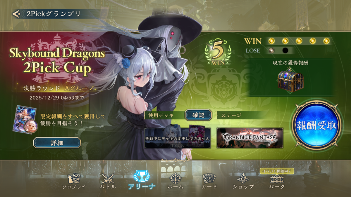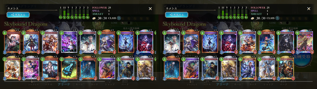 2Pick実装の2弾でネメシスで7勝を2回したくらいで全然勝てず、常設の2Pickは遊んでいませんでしたが今回完全にコツを掴みました♡