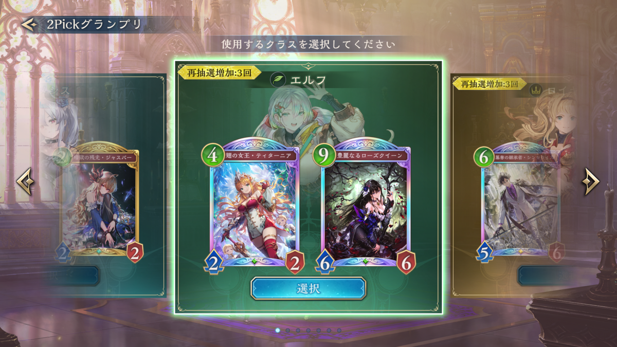 予選で勝率良かったエルフが本命でしたが、ティターニアもローズクイーンもいなかったので諦めました。せめて片方いれば…