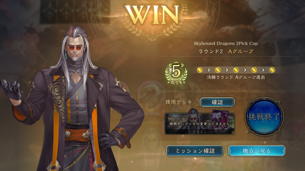 ↑ラウンド1とラウンド2が順調だった2Pickグランプリですが、A決勝で1敗から5連勝して優勝できました!!!!!