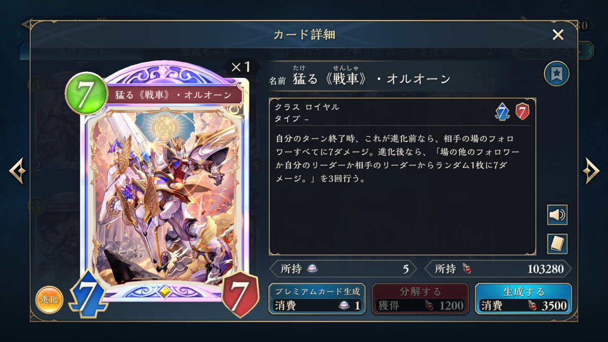 シャドバWB第5弾で1番賛否が分かれているカードであろう【猛る《戦車》・オルオーン】。